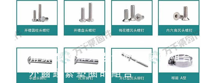 名稱: 1.機(jī)螺釘 2.自攻螺釘 3.鉆尾螺釘 4.墻板釘 5.纖維板釘 6.木螺釘7.六角木螺釘 8.不脫出螺釘 9.組合螺釘 10.微型螺釘 11.家具螺釘 12.電子螺釘 頭型: 1.六角頭(hexagon head) 2.六角頭法蘭面(hexagon head with fla
