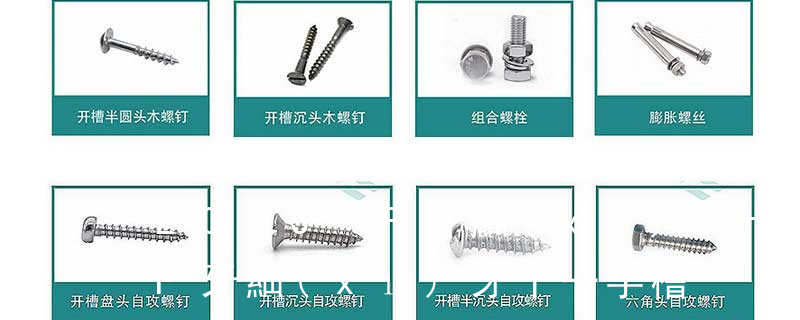 (鐵板牙自攻螺絲) B-2: Plastic Tapping Screw. (塑膠用,自攻螺絲) C: Wooden Screw : 木工螺絲 D: Drywall Screw :水泥墻螺絲 E: Self Drilling Screws鉆尾螺絲(不銹鋼鉆尾螺絲,復(fù)合材料鉆尾螺絲) F:膨脹螺絲,四片膨脹螺絲又