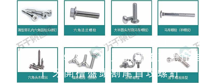 主要分類包括普通螺絲、機(jī)螺絲、自攻螺絲和膨脹螺絲三種。 有頭螺釘Cap screw 過去限于全牙的扣件。 六角頭螺釘Hex cap screw與大六角螺栓Hex bolt 顧名思義為頭部為六角型的外螺紋扣件,設(shè)計為使用扳手轉(zhuǎn)動。依照ASME B18.2.1標(biāo)準(zhǔn),六