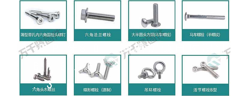 名稱: 1.機(jī)螺釘 2.自攻螺釘 3.鉆尾螺釘 4.墻板釘 5.纖維板釘 6.木螺釘7.六角木螺釘 8.不脫出螺釘 9.組合螺釘 10.微型螺釘 11.家具螺釘 12.電子螺釘 頭型: 1.六角頭(hexagon head) 2.六角頭法蘭面(hexagon head with flange) 3.方頭(square head) 4.T形頭T head (hammer head)5.扁圓頭mushroom
